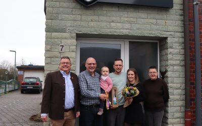 Bürgermeister Christian Thegelkamp beglückwünschte den Geschäftsführer, Detlef Hanke, zum Kauf des Gewerbegrundstücks und wünschte ihm für die weitere unternehmerische Tätigkeit viel Erfolg.
